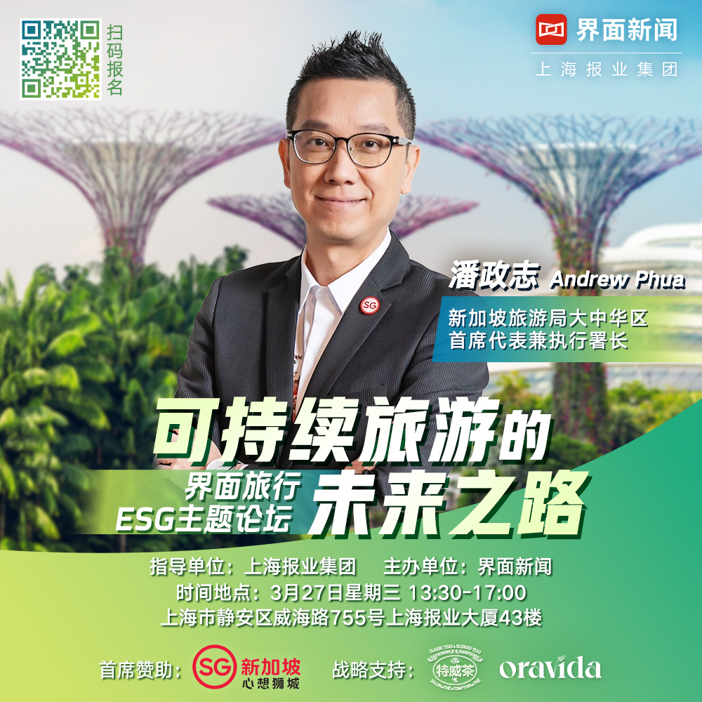 上海報(bào)業(yè)集團(tuán) | 界面新聞將于2024年3月27日星期三下午13:00在上海市靜安區(qū)威海路755號(hào)上海報(bào)業(yè)大廈43樓舉辦【2024界面旅行ESG主題論壇】,集結(jié)新加坡旅游局高管及國(guó)內(nèi)旅游業(yè)專家學(xué)者,圍繞“可持續(xù)旅游的未來(lái)之路”,著眼于ESG理念踐行,聚焦全球旅游業(yè)、從更全面的角度,探尋新時(shí)代背景下旅游企業(yè)與可持續(xù)發(fā)展同頻共振的發(fā)展新脈絡(luò)。感謝首席贊助新加坡旅游局、戰(zhàn)略支持企業(yè)ORAVIDA、特威茶對(duì)本次論壇的大力支持。