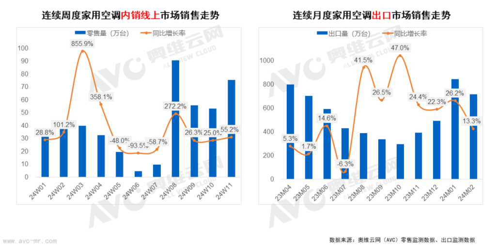 奧維云網(wǎng)(AVC)零售推總數(shù)據(jù)顯示,繼1月開門紅后,2月家用空調(diào)市場表現(xiàn)急轉(zhuǎn)直下,1-2月零售量累計下滑1.1%,這也加劇了空調(diào)廠商對2024年將是空調(diào)行業(yè)“小年”的擔(dān)憂(注:空調(diào)行業(yè)素有“大小年”的周期性規(guī)律說法)。
