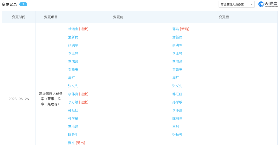 除了因違法違紀(jì)被調(diào)查的人,中原銀行的高管團(tuán)隊(duì),也在2023年出現(xiàn)了離職高潮。通過天眼查可以看到,據(jù)不完全統(tǒng)計(jì),中原銀行上市至今,高管離職事件共計(jì)約24起,卻有約10起都集中發(fā)生于2023年。