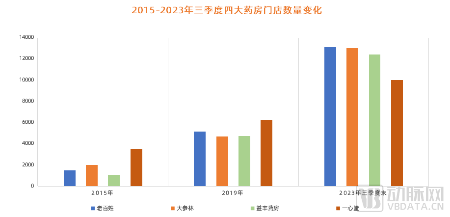 圖1. 2015-2023年三季度四大藥房門店數(shù)量變化(數(shù)據(jù)來源:年報)