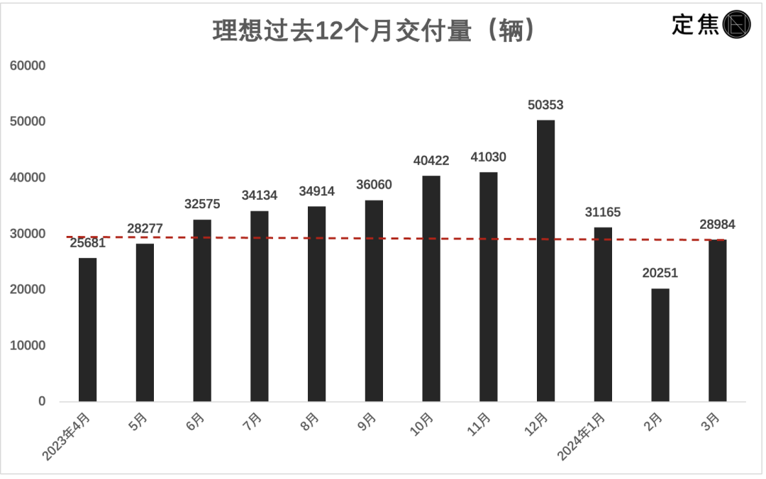 按照理想的原計(jì)劃,3月的交付量應(yīng)該在5萬輛左右,市場預(yù)期6萬輛。最終結(jié)果是只交付了28984輛,相比預(yù)期有很大差距,這是過去一年來較差的月度交付成績。