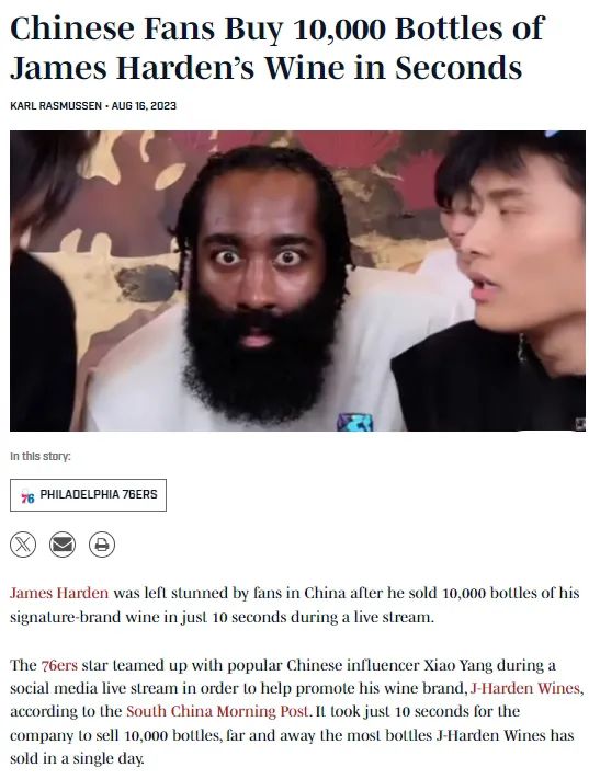 NBA巨星哈登被請(qǐng)到直播間時(shí),1萬(wàn)瓶自己品牌的紅酒在1秒內(nèi)被搶空,哈登不相信跑去看后臺(tái)數(shù)據(jù),回來(lái)時(shí)高興地在鏡頭前翻了一個(gè)跟頭。