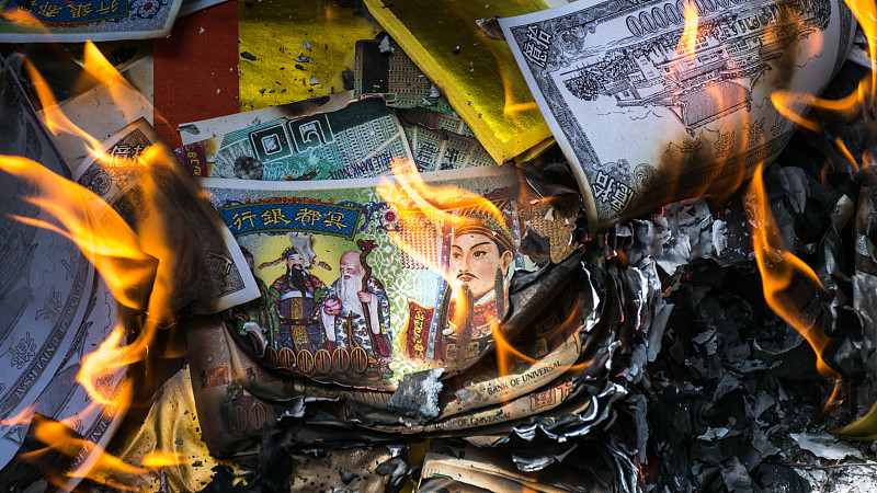 在許多不同的場(chǎng)合,中國(guó)人都會(huì)燒紙錢,柏樺在《燒錢》中如此描述: