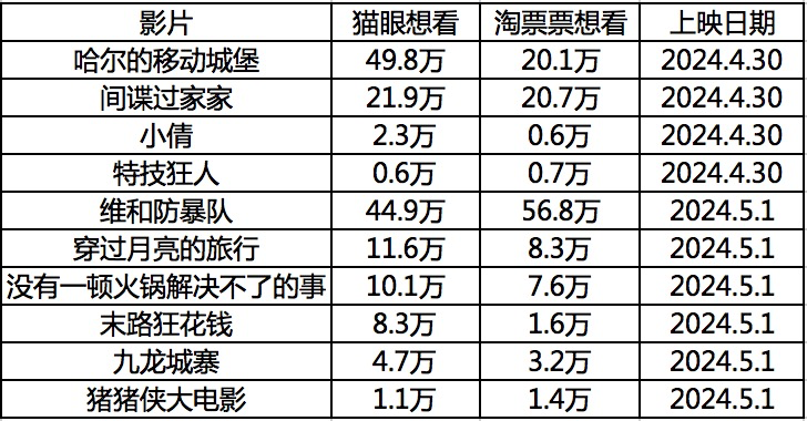 (2024年五一檔新片情況)