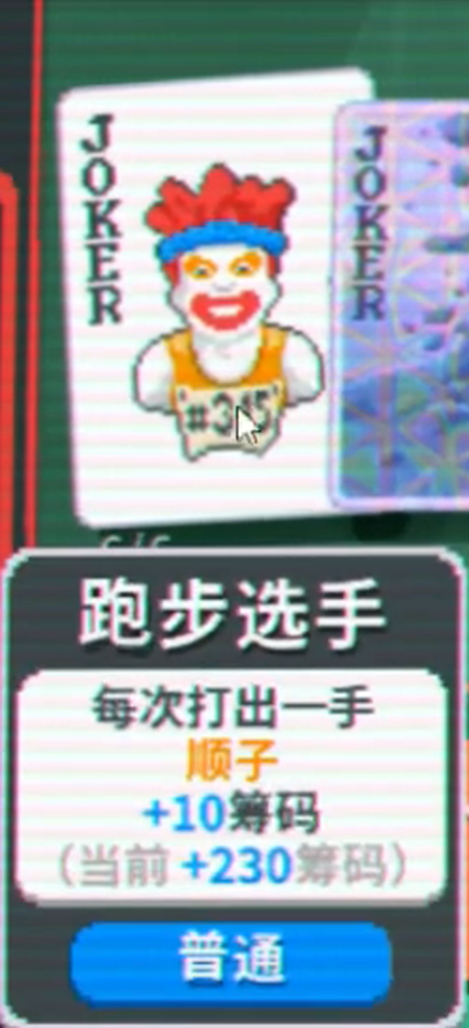 這時好巧不巧,你又拿到了“跑步選手”等成長性小丑牌,那么到游戲后期只需要打出一次順子就能秒天秒地。