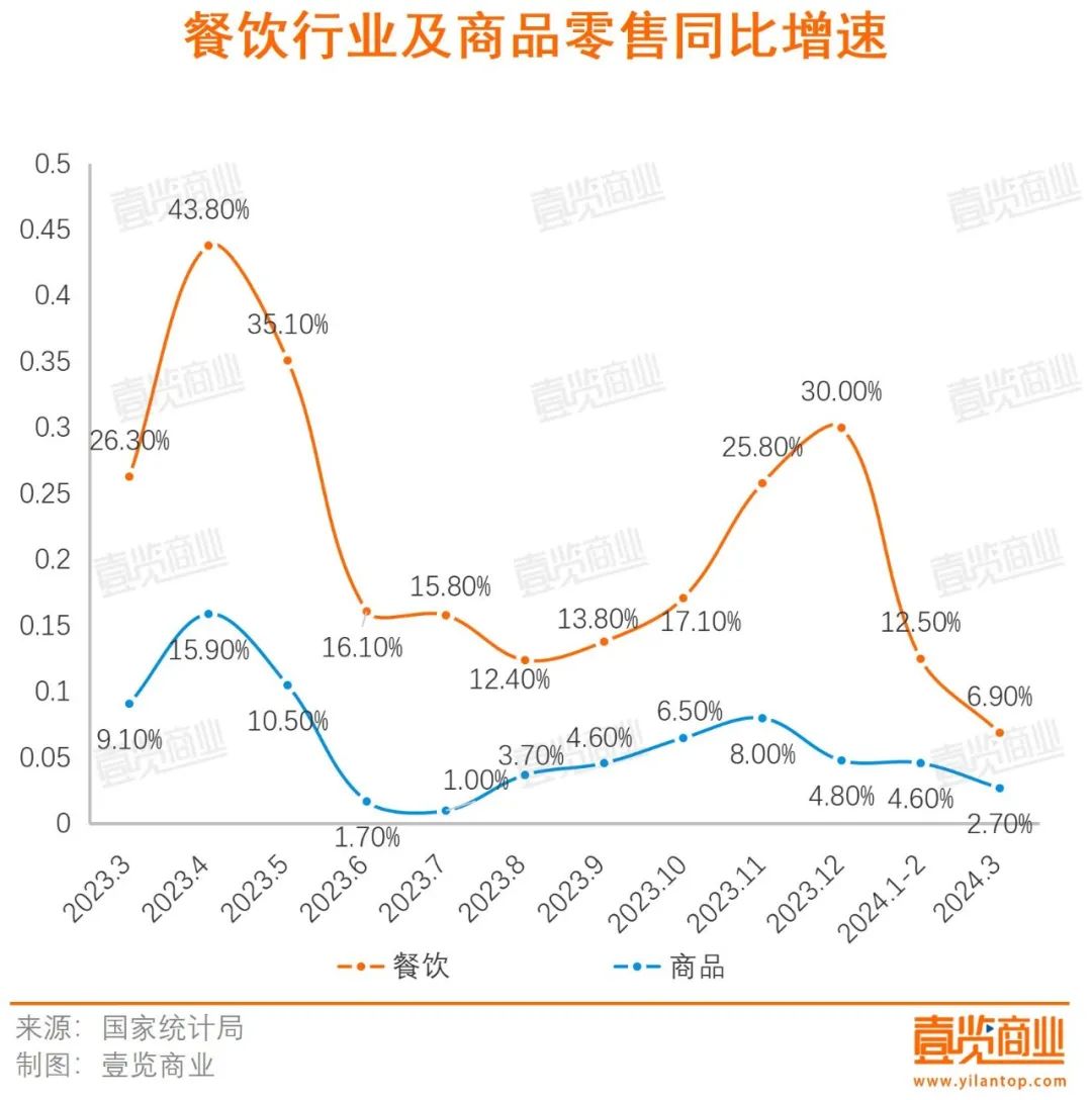 1、餐飲屹立不倒,商品零售增長乏力