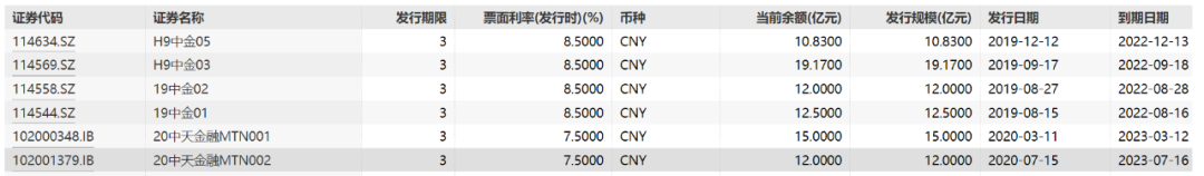 Wind數(shù)據(jù)顯示,中天金融目前尚有6只債券存續(xù),最近的到期日為2023年7月16日,剩余規(guī)模為81.5億。據(jù)了解其中“H9中金03”、“H9中金0520”已經(jīng)展期6次,中天金融MTN002等3至債券已經(jīng)展期5次。