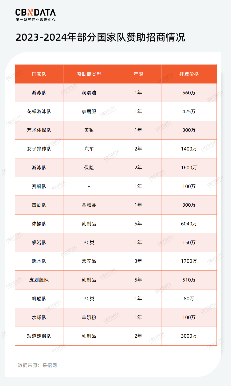 此外,相較于賽事贊助動(dòng)輒千萬(wàn)元的高支出,簽約團(tuán)體與體育明星對(duì)于品牌來(lái)說(shuō)相對(duì)成本更低。從近期國(guó)家隊(duì)贊助商招標(biāo)情況來(lái)看,除“王牌部隊(duì)”體操隊(duì)與“后起之秀”短道速滑隊(duì)年均掛牌價(jià)格超過(guò)千萬(wàn)外,多數(shù)國(guó)家隊(duì)的贊助費(fèi)多處于500萬(wàn)左右,而賽艇隊(duì)、帆船隊(duì)、攀巖隊(duì)等小眾運(yùn)動(dòng)的國(guó)家隊(duì)更是經(jīng)濟(jì),年均掛牌價(jià)約在百萬(wàn)左右。