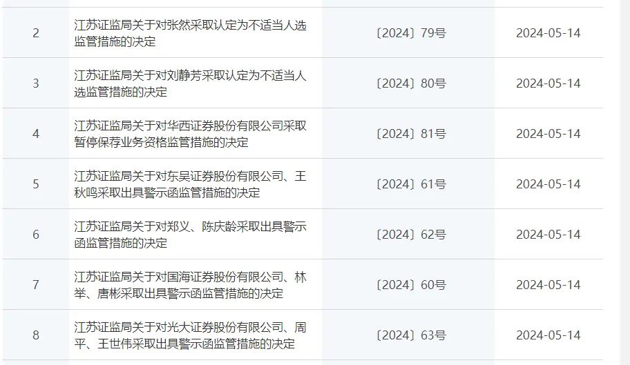 5月14日,江蘇證監(jiān)局連續(xù)發(fā)布7張券商罰單,相關(guān)內(nèi)容均與金通靈保薦督導(dǎo)業(yè)務(wù)有關(guān),其中,光大證券及公司財務(wù)顧問主辦人員周平、王世偉;國海證券及項目持續(xù)督導(dǎo)保代林舉、唐彬;東吳證券及項目負(fù)責(zé)人王秋鳴均被采取出具警示函監(jiān)管措施。