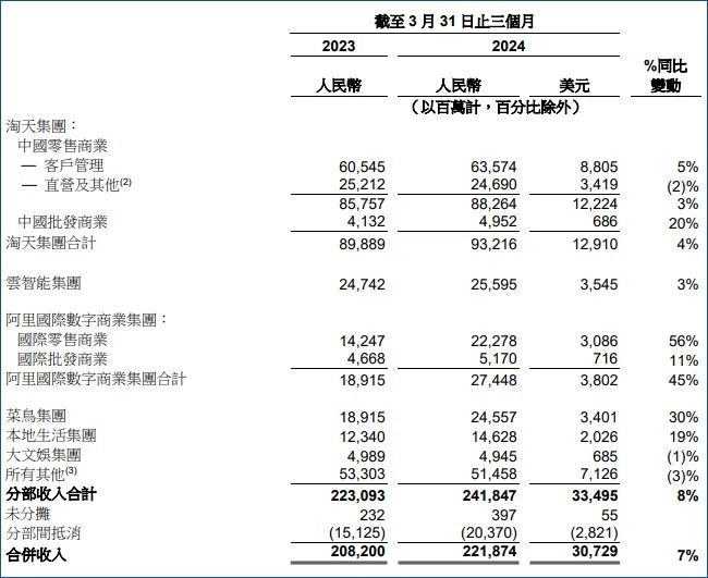 淘天集團最大的業(yè)務增長來自中國批發(fā)商業(yè)即1688,同比增長20%,但僅有49.52億元的體量,占總營收比重偏小。