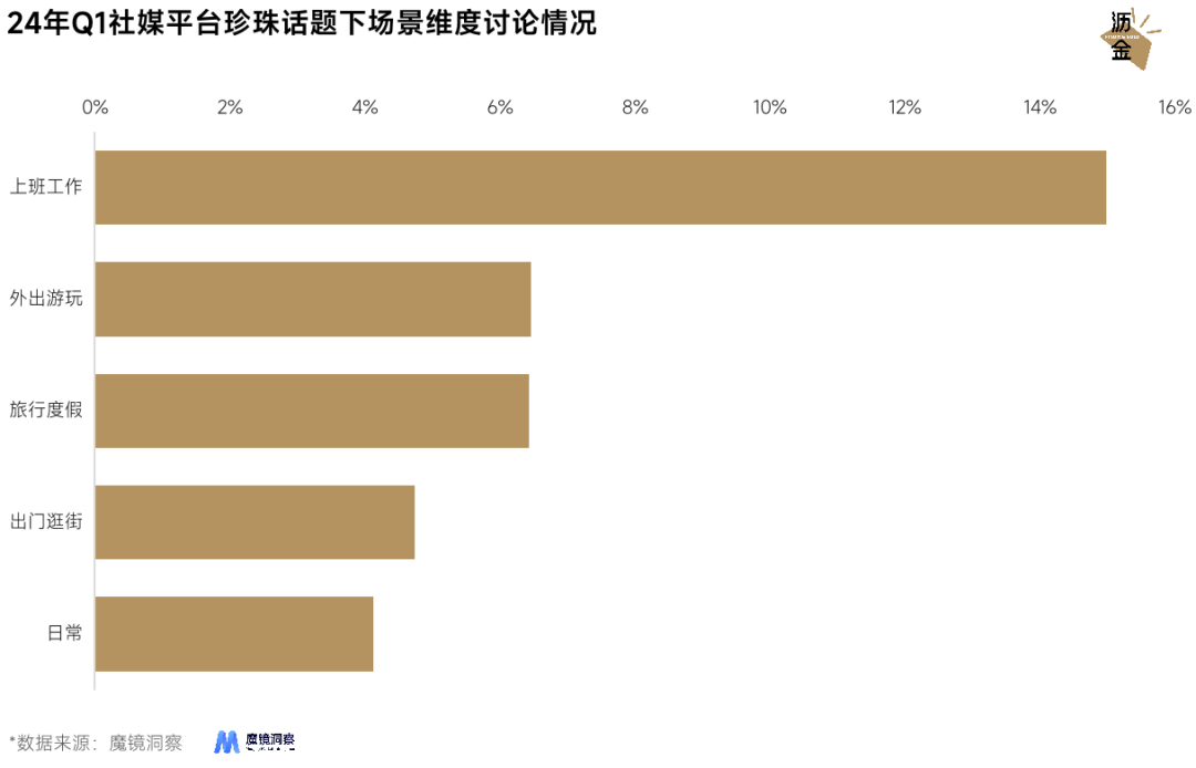 24年Q1社媒平臺珍珠話題下場景維度討論情況