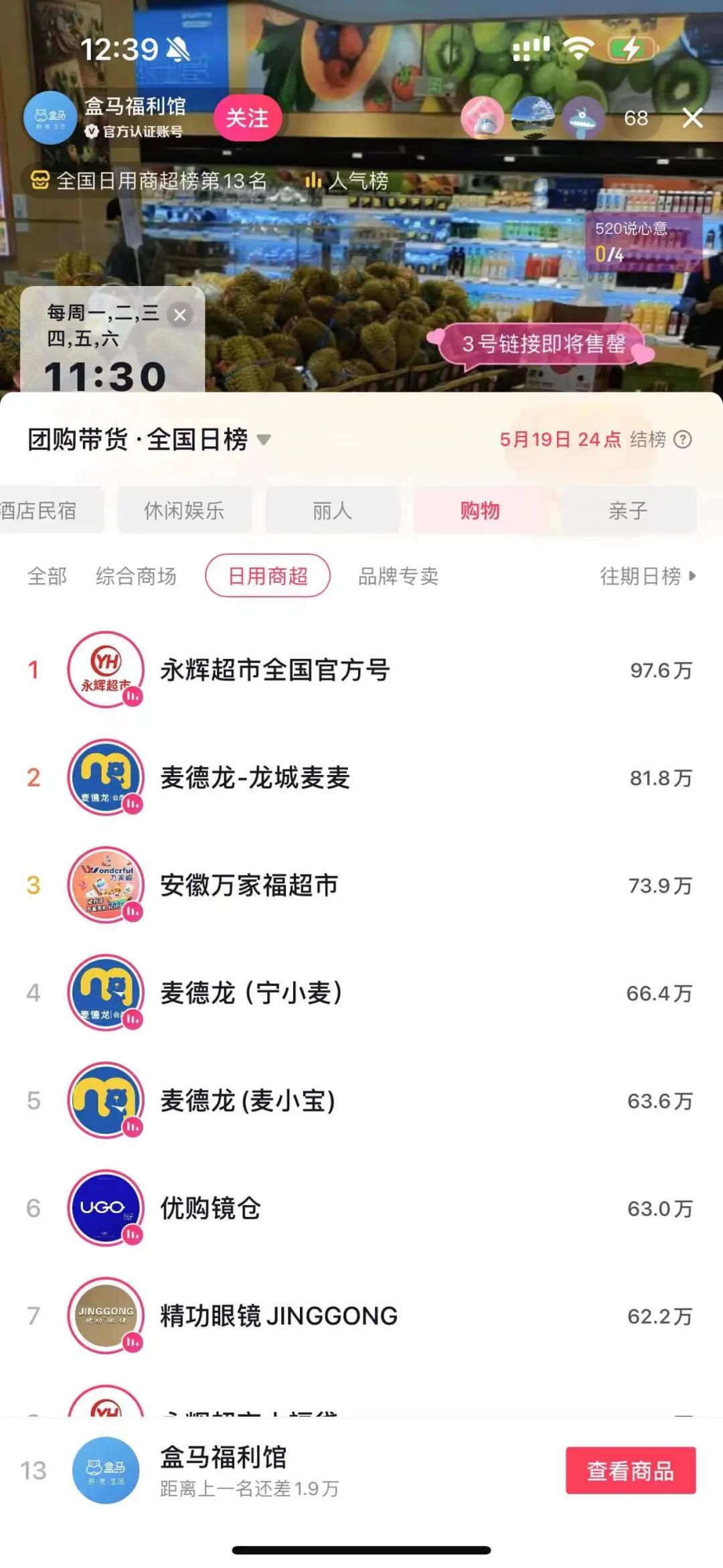 事實(shí)上,當(dāng)前在抖音,諸多商超企業(yè)都開設(shè)了超市類賬號,進(jìn)行直播帶貨。并且抖音平臺還推出了相應(yīng)的榜單,量化各超市類賬號的熱度和業(yè)績??梢源_定,未來線上將成為傳統(tǒng)商引流的重要一環(huán)。