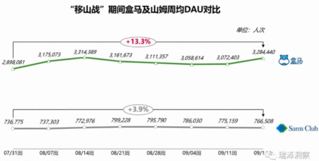 事實(shí)證明,盒馬的舉措確實(shí)有一定生命力。極光大數(shù)據(jù)顯示,2023年7月-9月推廣“移山價(jià)”活動時(shí),盒馬App周均DAU增長13.3%。2023年8月,盒馬推出售價(jià)39.9元的網(wǎng)紅產(chǎn)品榴蓮千層蛋糕,該產(chǎn)品在上海地區(qū)的銷量增長26倍。
