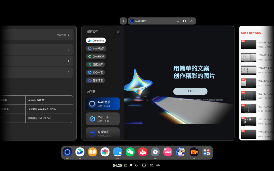 不久前,以智能眼鏡為核心入口為用戶提供下一代ALL-in-one移動辦公解決方案的AR廠商INAIR,也發(fā)布了自研大模型AI助理與新版手機端交互應用INAIR APP,通過深化“AI+AR”核心技術融合創(chuàng)新解鎖更多實用功能與場景應用。
