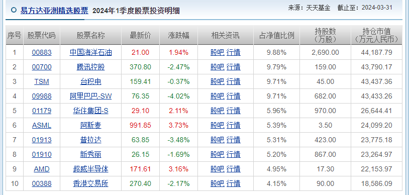 其中,建信新興市場混合(QDII)A漲幅最大,上漲27.07%,持倉前10主要是美股高科技公司,占比高達69.24%,占比9%以上個股5只,分別是:SK hy10.54%,英偉達10.03%,臺積電9.69%,阿斯麥9.55%,高通9.37%。