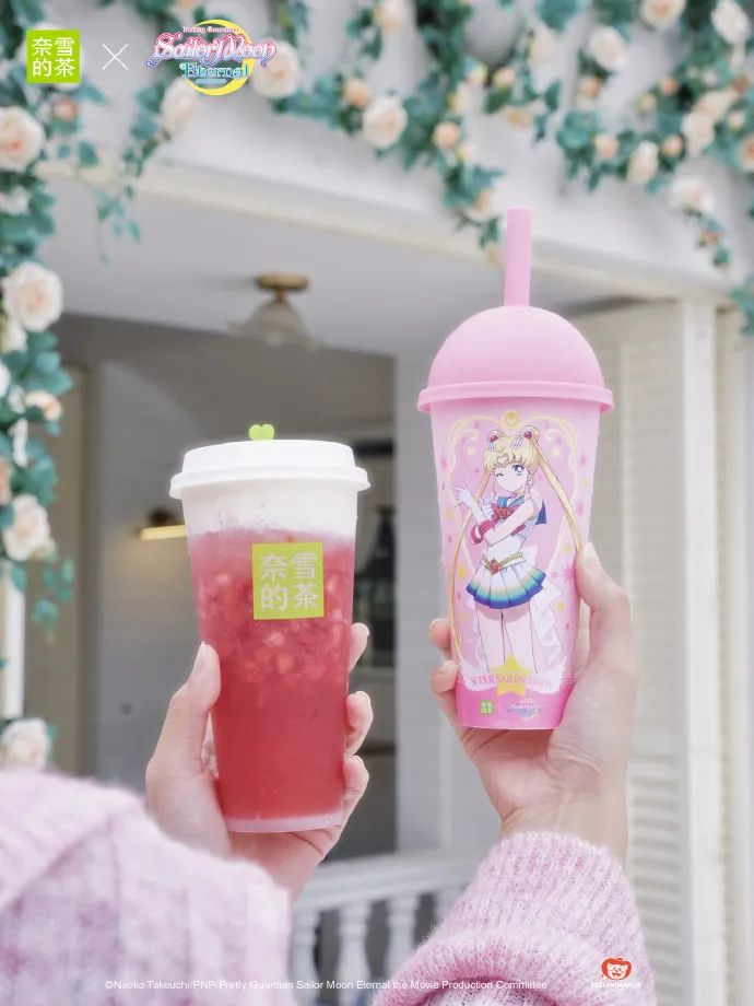 從最近動作看,仍不乏“白富美”的意味。比如,聯(lián)合“美少女戰(zhàn)士”IP,推出聯(lián)名霸氣鮮果茶,推介時強調(diào)“喝霸氣鮮果茶,變身霸氣美少女”。