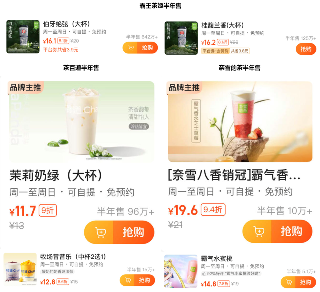 而奈雪的茶同期“半年售”數(shù)據(jù)顯示,“霸氣香水芝士草莓”超10萬,“霸氣水蜜桃”為5.1萬。