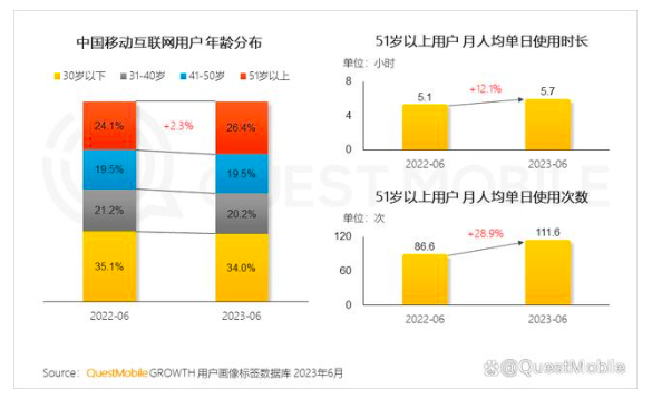 同時,老年受眾的規(guī)模確實在與日俱增,越來越多的老年人將追劇、追綜藝作為精神文化生活的一部分。根據(jù)QuestMobile發(fā)布的《2023中國移動互聯(lián)網(wǎng)半年大報告》,截至2023年6月,移動互聯(lián)網(wǎng)月活用戶中銀發(fā)人群持續(xù)增長,51歲以上用戶人群占比已經(jīng)達(dá)到26.4%。此次調(diào)查也發(fā)現(xiàn),部分中老年人每天的追劇時長不減反增,除了在電視上觀看外,還會通過手機(jī)、電腦、平板、短視頻平臺追劇。