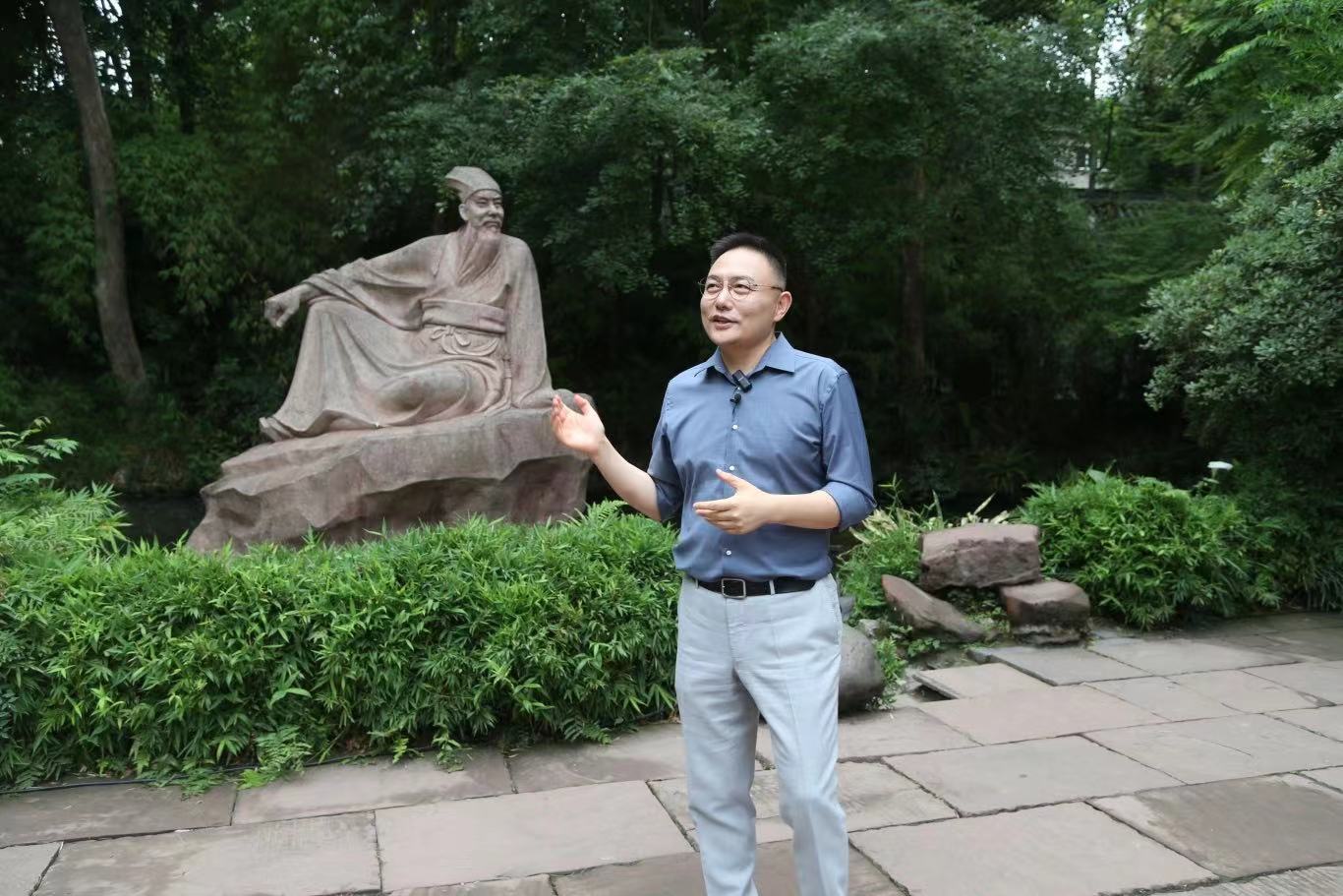 記者:您為什么選擇在眉山三蘇祠直播講解蘇東坡?