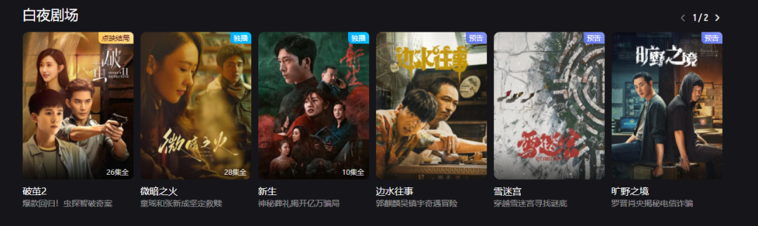 以優(yōu)酷為例,4月22日,優(yōu)酷宣布將此前的“懸疑劇場”升級為“白夜劇場”,內(nèi)容從過去的“懸疑+”調(diào)整為深耕“社會派推理”,為了和其他平臺懸疑劇場區(qū)分,優(yōu)酷沒有過分追求離奇曲折的劇情,和刺激驚險的追兇過程,而是用普通人的生活和視角去展現(xiàn)社會和人性的微妙,激發(fā)觀眾共鳴。