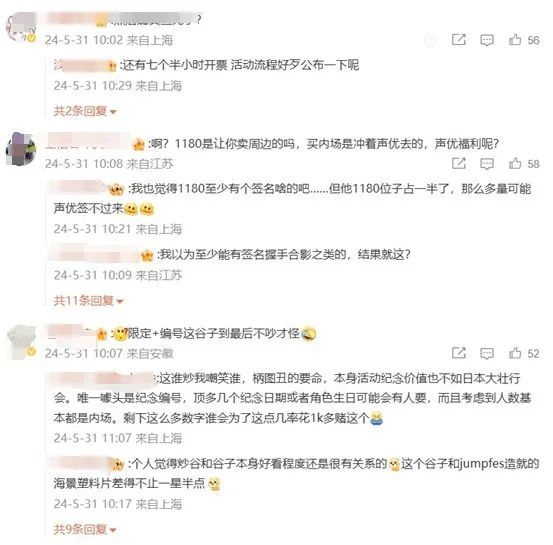 由于公開(kāi)的售票信息和期望有一定差異,大量小排球粉絲在微博、小紅書等社交平臺(tái)上針對(duì)聲優(yōu)、現(xiàn)場(chǎng)播放影片內(nèi)容以及限定禮包等各個(gè)信息都提出了疑問(wèn):