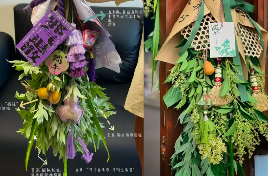 今年端午,一種新中式的“艾草門掛”火了——原本兩三塊錢一把的艾草,經(jīng)過花藝師的裝點,搭配五色流蘇、小葫蘆、??ā⑾隳矣氐雀挥屑樵⒁庵惺脚浼?,一下子就賣到了上百元、甚至近兩百元的單價,臨近端午供不應(yīng)求。