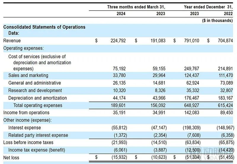 根據(jù)招股書,2023年,Waystar實現(xiàn)7.91億美元營收,凈虧損為5130萬美元,相比之下,2022年的營收則為7.05億美元,凈虧損為5150萬美元。如果按季度看,其在2024年第一季度營收和凈虧損分別為2.25億美元和1593萬美元,上年同期的營收和凈虧損則分別為1.91億美元和1062萬美元。