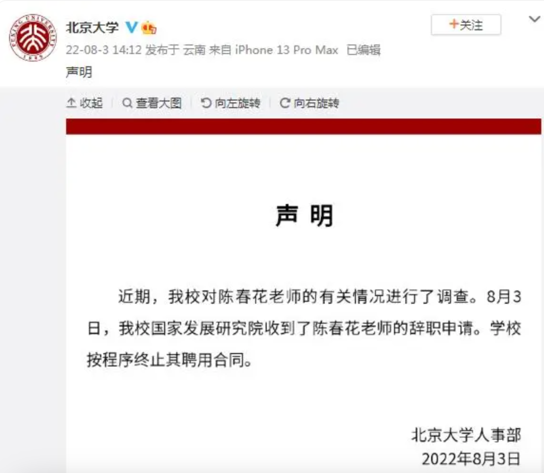 在2022年,華為就曾和北大知名學(xué)者陳春花“割席”。彼時網(wǎng)絡(luò)上有多篇文章夸大、演繹陳春花對華為的解讀、評論,華為于是發(fā)布聲明稱“華為與陳春花教授無任何關(guān)系,華為不了解她,她也不可能了解華為”。這篇聲明一度使得陳春花陷入了學(xué)歷輿論風波,社會聲譽受到影響。