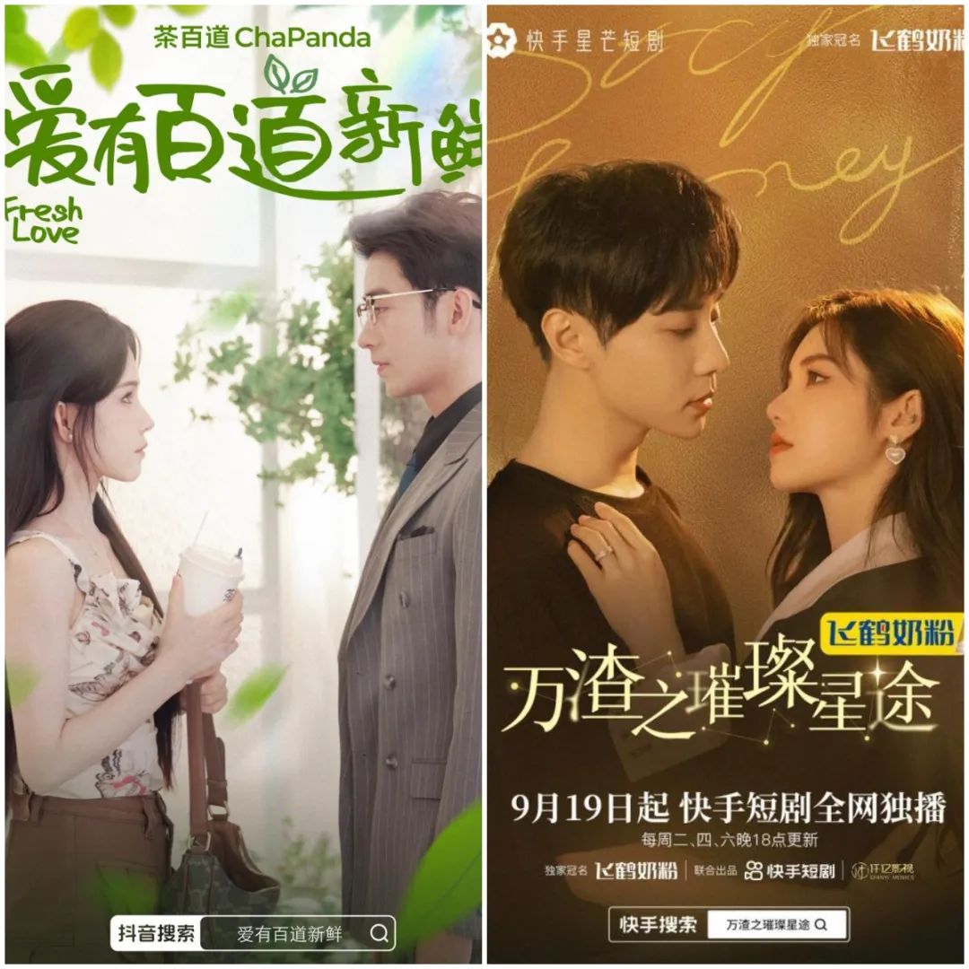 相較于預(yù)算無上限的傳統(tǒng) TVC,短劇平均幾十萬的投拍成本卻能輕松撬動(dòng)上億播放量,對品牌方而言頗有一種“花小錢辦大事”的舉重若輕感。許多消費(fèi)品牌也試水了短劇品宣,比如茶百道與姜十七合作定制的《愛有百道新鮮》,飛鶴奶粉獨(dú)家冠名了達(dá)人一只璐的短劇《萬渣之璀璨星途》。