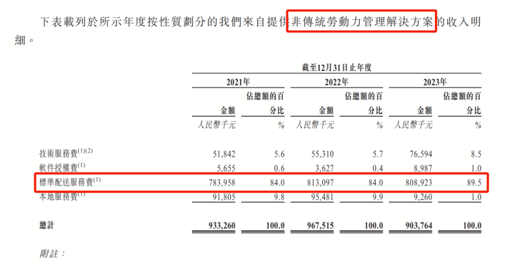 在非傳統(tǒng)勞動力管理解決方案中,博爾捷的主要收益來自于標準配送服務。這項服務包括建立和運營配送站點、招募騎手,以及執(zhí)行配送任務,博爾捷因此向客戶收取服務費,同時向騎手支付傭金。這一服務在公司總收入中的占比在過去三年均超過80%。