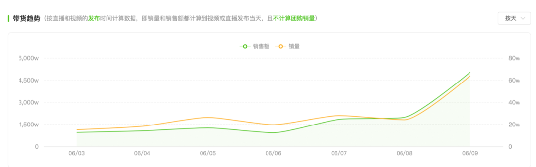 與輝同行發(fā)布的主播預(yù)告顯示,6月的前13天里,董宇輝僅在其中7天露面,每天直播時(shí)長(zhǎng)在2—3.5小時(shí)不等。根據(jù)飛瓜數(shù)據(jù)抖音版,6月1日—12日,與輝同行直播GMV破1億,且每一個(gè)直播銷售高峰期,都出現(xiàn)在董宇輝直播的日子。在抖音6月的帶貨達(dá)人榜上,與輝同行也位列第二。