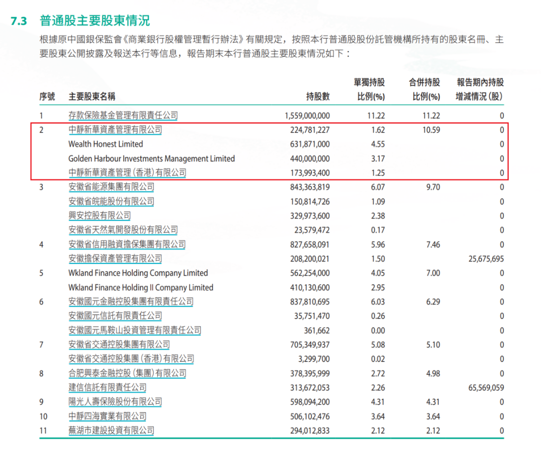 Wealth Honest Limited是“中靜系”旗下公司。據徽商銀行2023年財報顯示,Wealth Honest Limited控股股東為中靜新華資產管理(香港)有限公司(下稱:中靜新華資管),實際控制人為上海宋慶齡基金會。