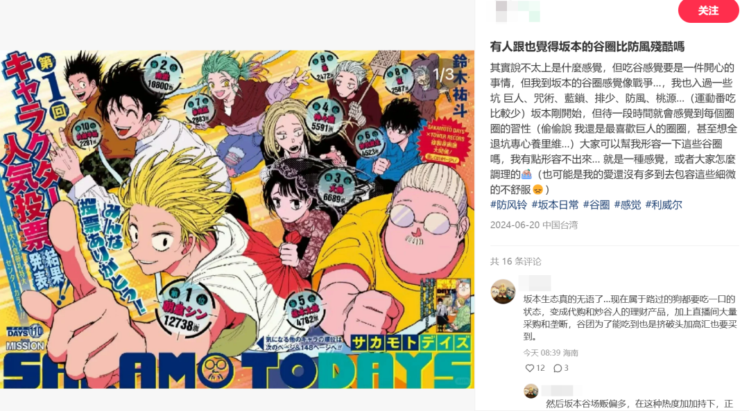 “防風鈴 谷子”相關討論帖子下方,甚至聚集了不少“講談社受害者”,《東京復仇者》的粉絲安慰說習慣就好,《藍色監(jiān)獄》粉絲表示《防風鈴》出谷頻率還沒到極限。講談社的這三部作品各自擁有無可替代的高辨識度角色,他們從身形容貌到性格特征,都在互聯網傳播和商業(yè)衍生層面發(fā)揮作用。