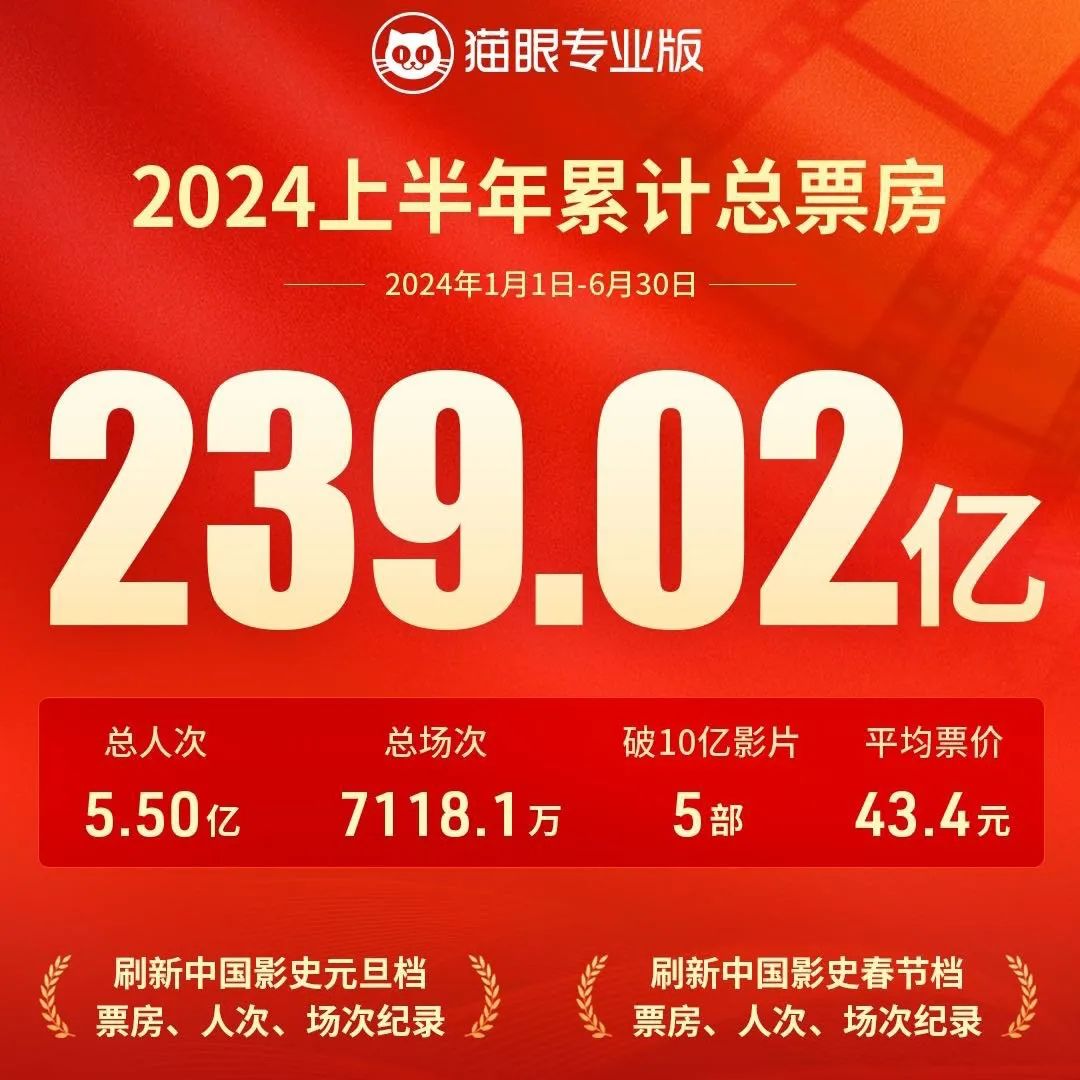 2024上半年累計總票房(圖源:貓眼專業(yè)版)