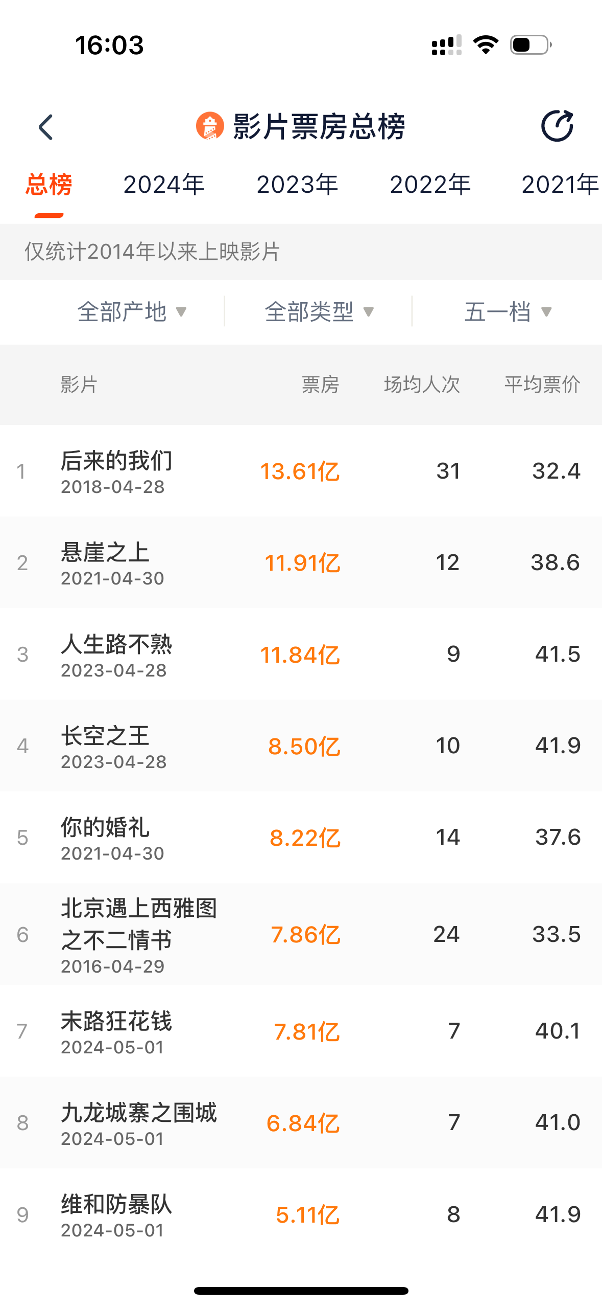 五一檔票房排名(圖源:燈塔專業(yè)版)
