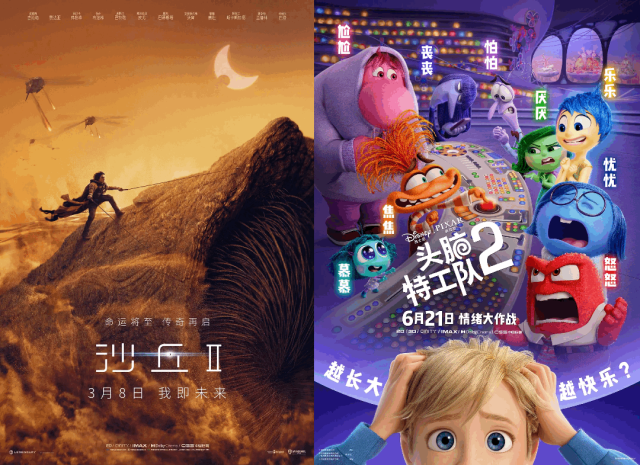 對比海內(nèi)外的市場表現(xiàn),這種差距格外明顯。《沙丘2》《頭腦特工隊2》是目前全球票房第一二位,作為全球十大票倉之一的中國,貢獻(xiàn)占比卻并不算多,《沙丘2》的全球票房中,中國以4904萬美元的成績位列第三,《頭腦特工隊2》更甚,中國以2900萬美元的成績位列全球第七,不及巴西、意大利。
