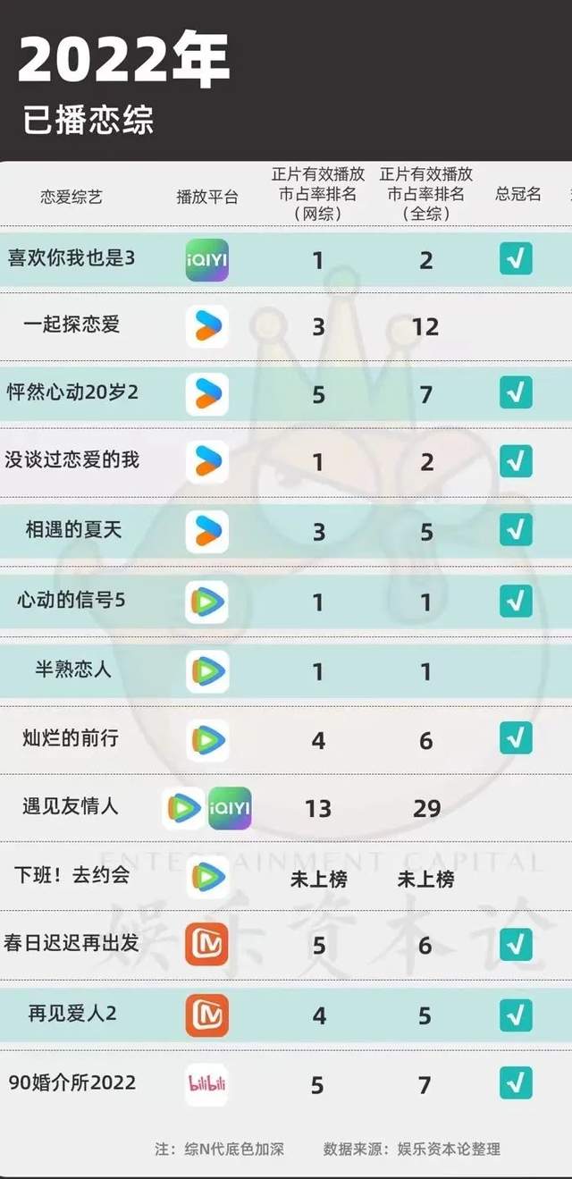 其三,在經(jīng)過野蠻生長之后,平臺開始內(nèi)部淘汰戀綜IP。這是各個(gè)平臺在前幾年試錯(cuò)之后的結(jié)果。