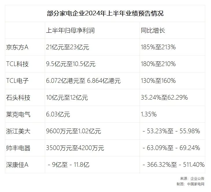 近期,家電上市公司業(yè)績預(yù)告密集發(fā)布。從披露的情況來看,今年上半年,面板企業(yè)業(yè)績“回血”,清潔電器表現(xiàn)優(yōu)異,彩電行業(yè)出現(xiàn)分化,集成灶企業(yè)則繼續(xù)承壓。