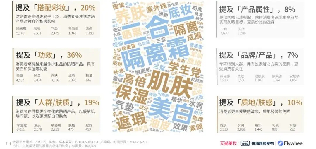 根據(jù)用戶說數(shù)據(jù)整合發(fā)現(xiàn),當(dāng)前防曬產(chǎn)品的功能范疇已顯著拓展,不再僅僅局限于預(yù)防曬傷與曬黑的基礎(chǔ)防護層面,而是進一步向多元化、功效化的方向邁進。