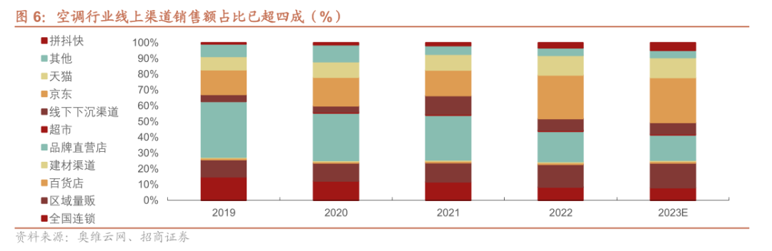 但隨著空調行業(yè)供需端出現(xiàn)變化,線上渠道占零售額占比已接近半數(shù),季節(jié)性周期被進一步削弱,格力過往“壓貨經(jīng)銷”的渠道模式被線上銷售模逐漸取代。