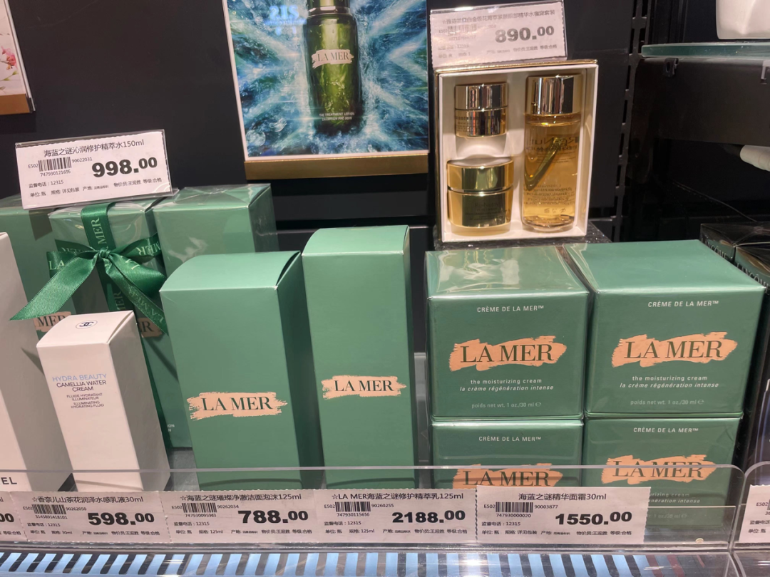 高端品方面,胖東來的貨盤里有雅詩蘭黛、蘭蔻、資生堂等高端品牌。而在中百,值得注意的是,除上述外,該店赫然出現(xiàn)了本不該在超市業(yè)態(tài)中出現(xiàn)的赫蓮娜與海藍之謎等高奢品牌。