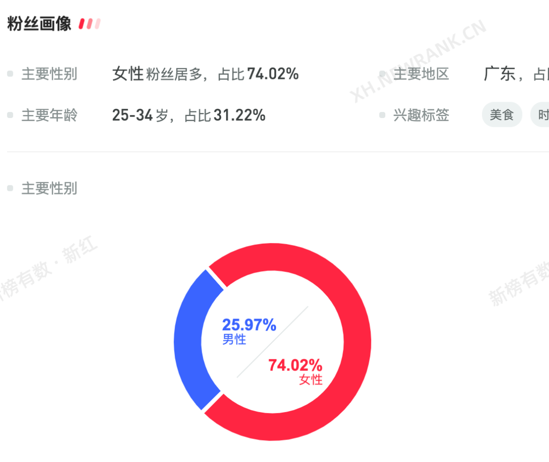 據(jù)新紅數(shù)據(jù),雷軍的小紅書賬號(hào)女性粉絲居多,占比74.02%,成功圈粉女性用戶,實(shí)現(xiàn)用戶與產(chǎn)品的精準(zhǔn)對接。