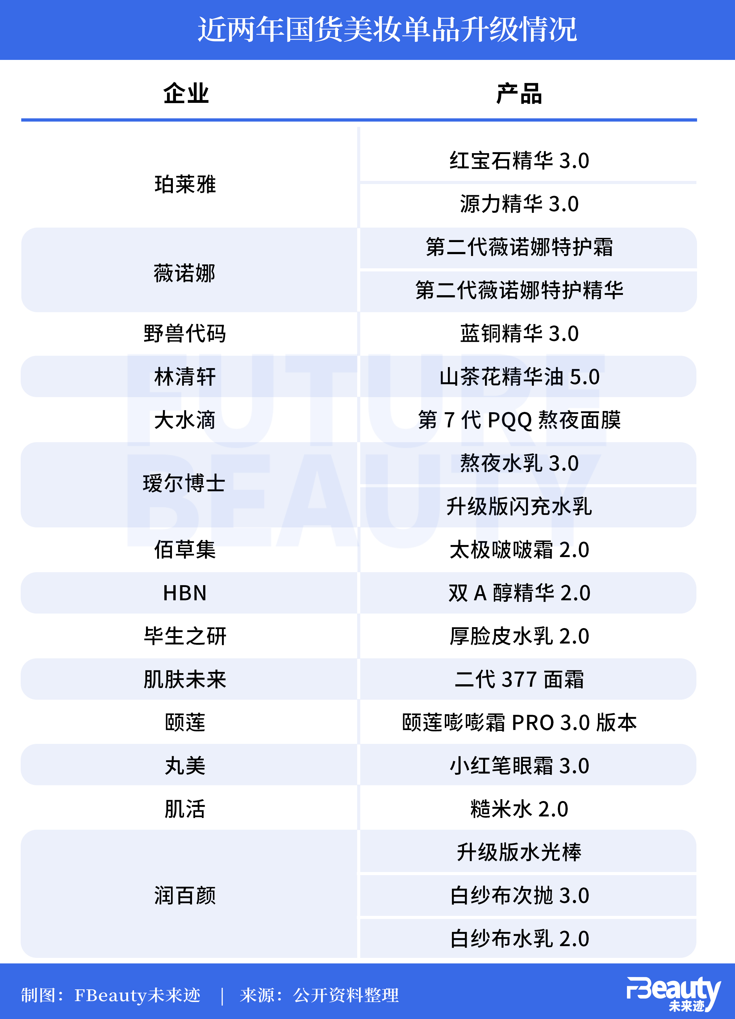 從近兩年國貨美妝大單品升級情況可見,伴隨研發(fā)端的深入和成果落地,多數(shù)產(chǎn)品已經(jīng)進入2.0或3.0階段。而這些大單品的功效進階也反向帶動品牌科研走向體系化。
