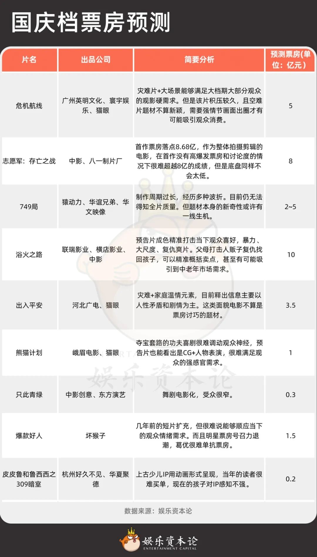 國(guó)慶檔票房預(yù)測(cè),資料來(lái)源:娛樂(lè)資本論