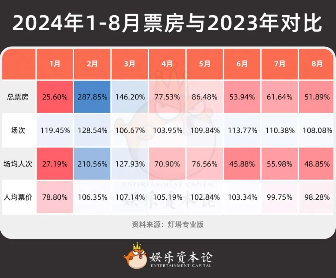 2024年1-8月票房與2023年對(duì)比