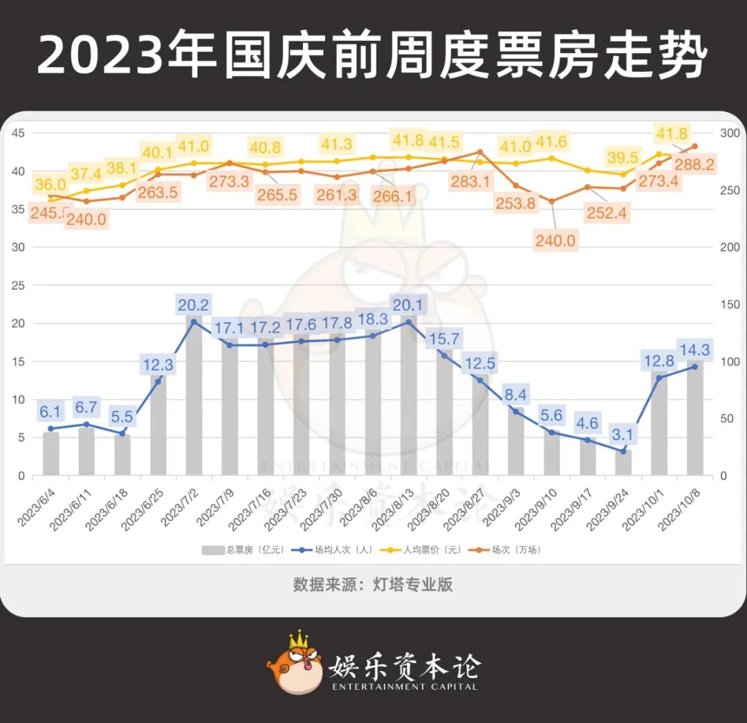 更何況,國(guó)慶檔這2023年從預(yù)測(cè)的40億跌到27億后,就已經(jīng)不再是一個(gè)票房保障了。