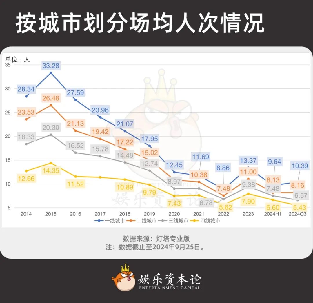 按城市劃分場(chǎng)均人次情況,注:數(shù)據(jù)截止至2024年9月25日。