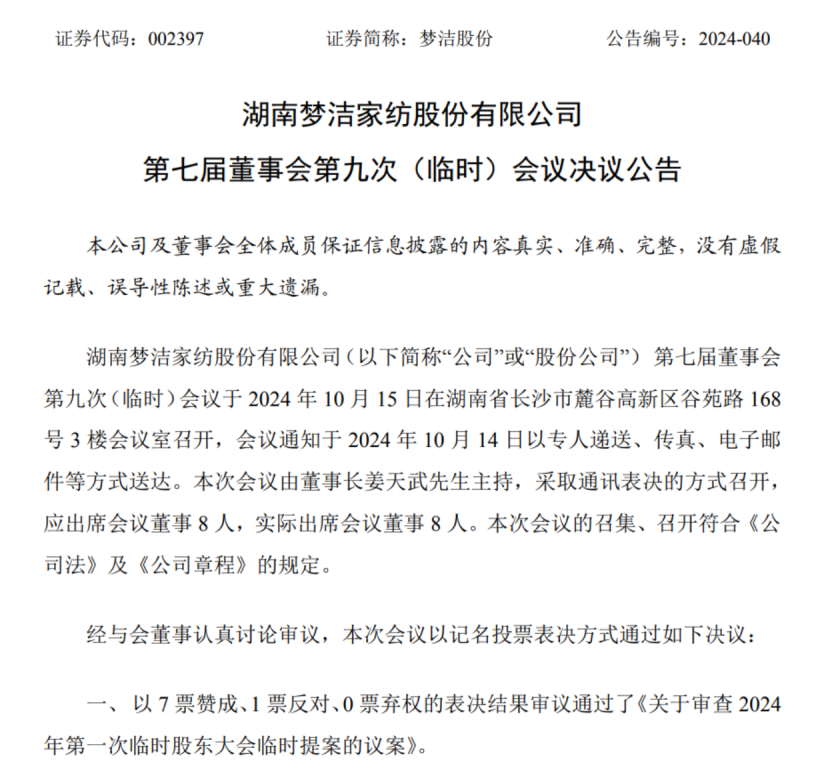 去年5月26日,夢(mèng)潔股份曾召開(kāi)年度股東大會(huì)審議8項(xiàng)議案,其中7項(xiàng)未通過(guò),背后新實(shí)控人長(zhǎng)沙金森也多次投出棄權(quán)票或反對(duì)票,深交所對(duì)此還下發(fā)了關(guān)注函。