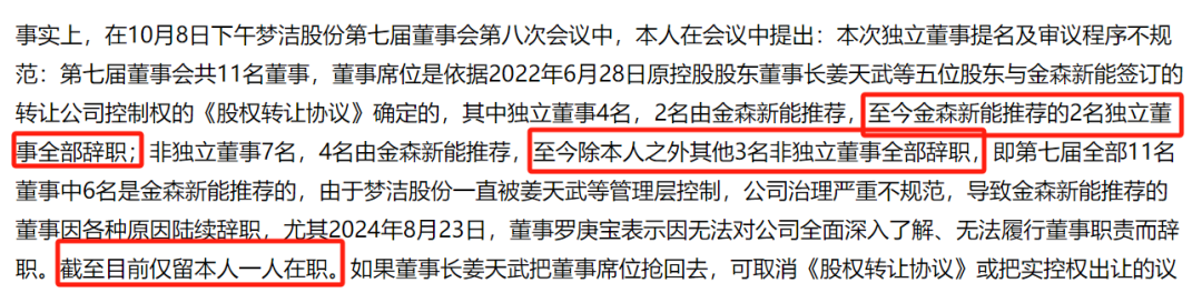 夢(mèng)潔股份曾在8月22日發(fā)公告,由長(zhǎng)沙金森提名的董事羅庚寶,向公司遞交了書(shū)面辭職報(bào)告。羅庚寶辭職理由為無(wú)法對(duì)公司全面深入了解,無(wú)法履行董事職責(zé)、盡到董事義務(wù)。