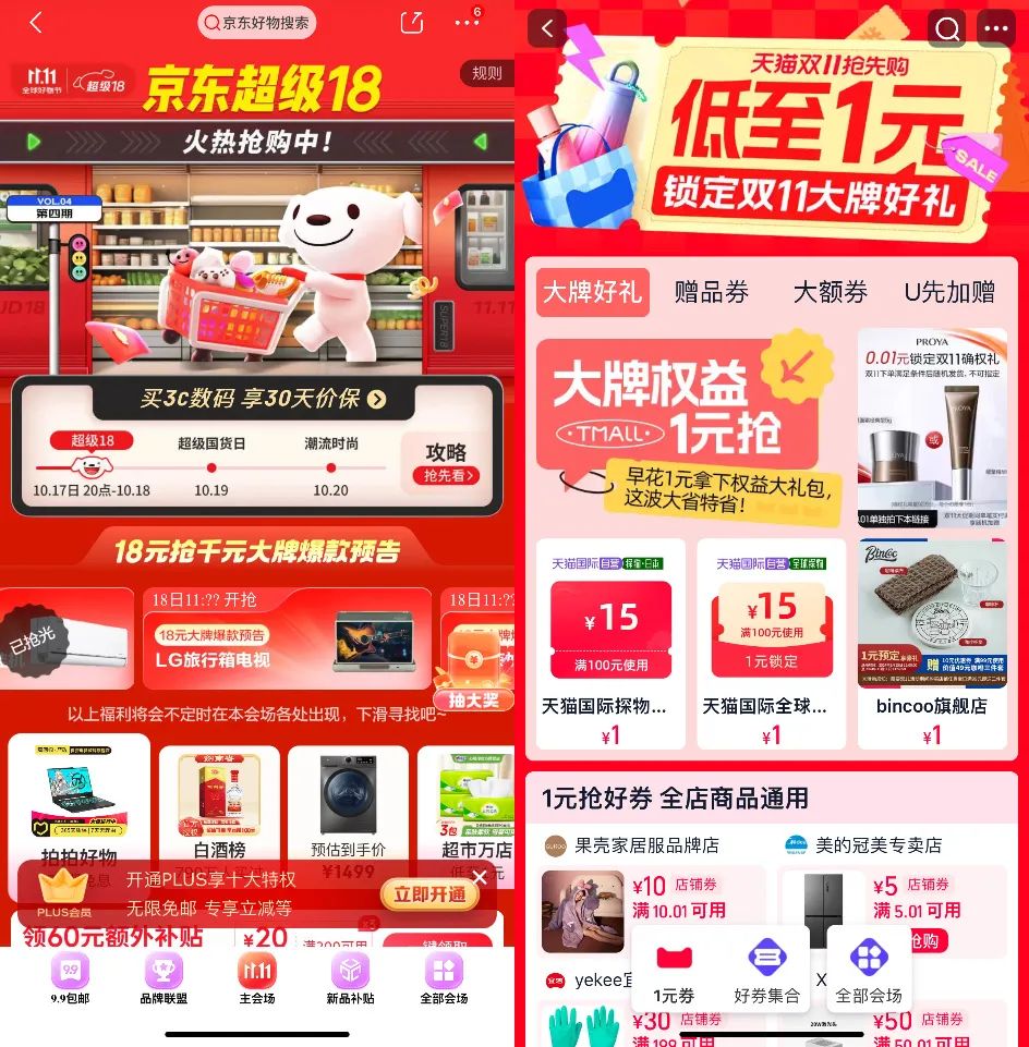 10月14日晚上8點,淘寶、天貓、京東等電商平臺紛紛啟動今年的雙11活動,比去年提前了10天左右。